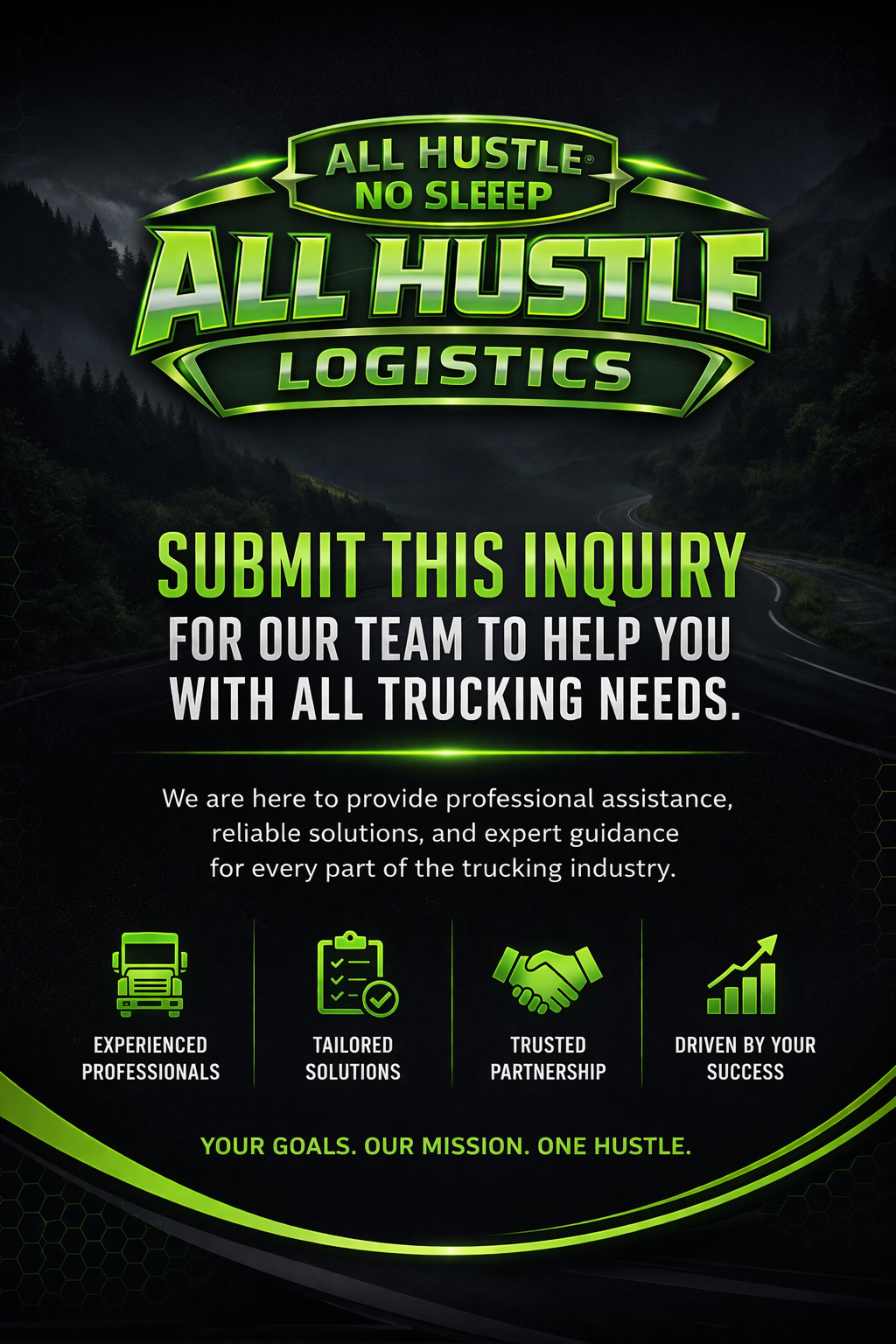 Use the form below to contact All Hustle Logistics LLC about trucking consulting, driver or owner-operator recruitment, dispatch training, or startup guidance.